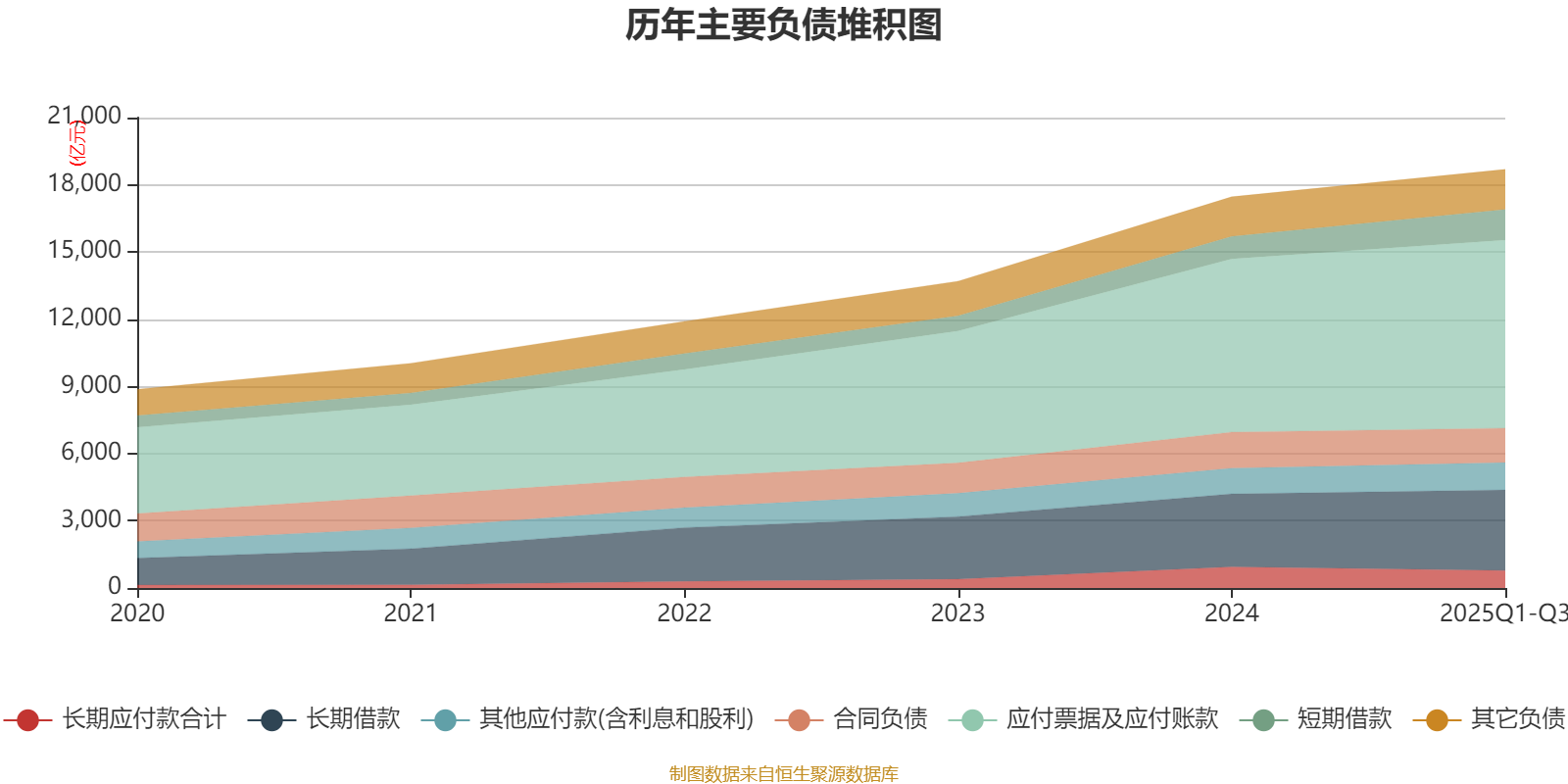 负债重大变化方面,截至2025年三季度末,公司短期借款较上年末增加35.87%,占公司总资产比重上升1.24个百分点;长期应付款合计较上年末减少17.32%,占公司总资产比重下降0.93个百分点;合同负债较上年末减少4.59%,占公司总资产比重下降0.73个百分点;应付票据及应付账款较上年末增加8.6%,占公司总资产比重上升0.73个百分点。