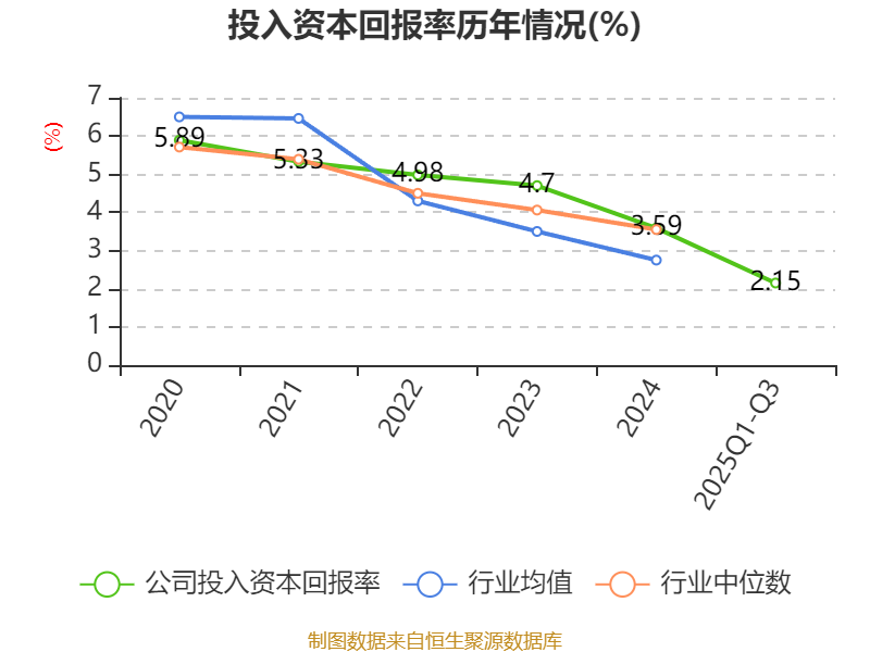 盈利能力方面, 2025年前三季度公司加权平均净资产收益率为5.09%,同比下降2.02个百分点。公司2025年前三季度投入资本回报率为2.15%,较上年同期下降0.48个百分点。