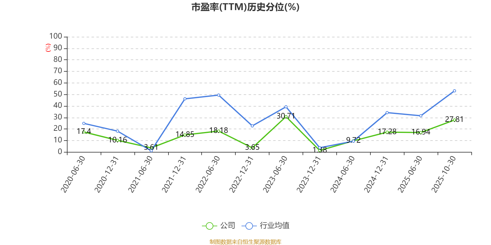 市盈率、市净率为负时,不显示当期分位数,会导致折线图中断。