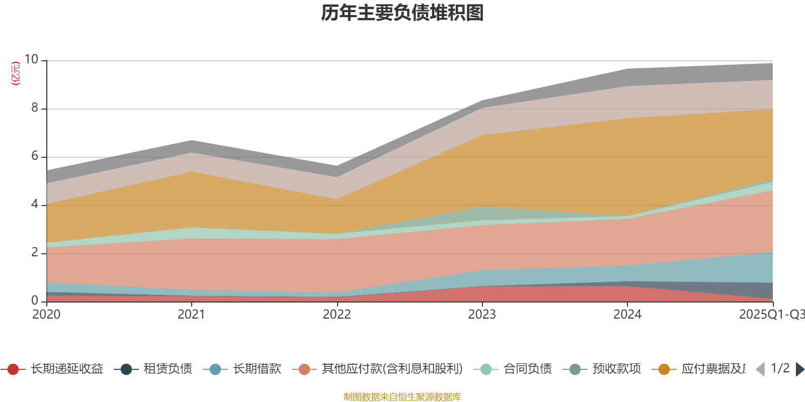 负债重大变化方面,截至2025年三季度末,公司应付票据及应付账款较上年末减少28.33%,占公司总资产比重下降9.03个百分点;其他应付款(含利息和股利)较上年末增加32.6%,占公司总资产比重上升5.16个百分点;长期借款较上年末增加93.5%,占公司总资产比重上升4.96个百分点;长期递延收益较上年末减少83.15%,占公司总资产比重下降4.23个百分点。