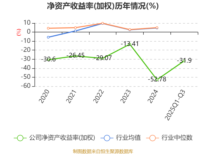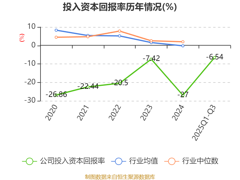 盈利能力方面, 2025年前三季度公司加权平均净资产收益率为-31.9%,同比下降11.36个百分点。公司2025年前三季度投入资本回报率为-6.54%,较上年同期上升5.02个百分点。