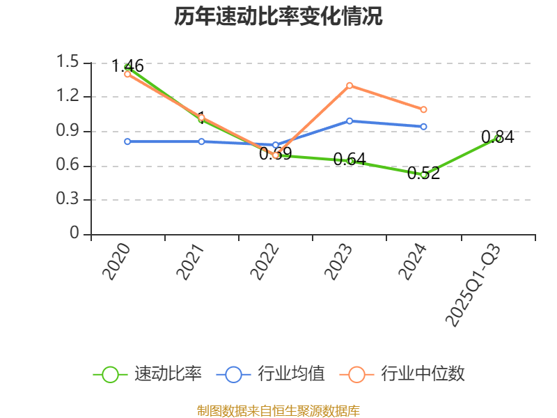 2025年前三季度,公司流动比率为1.12,速动比率为0.84。