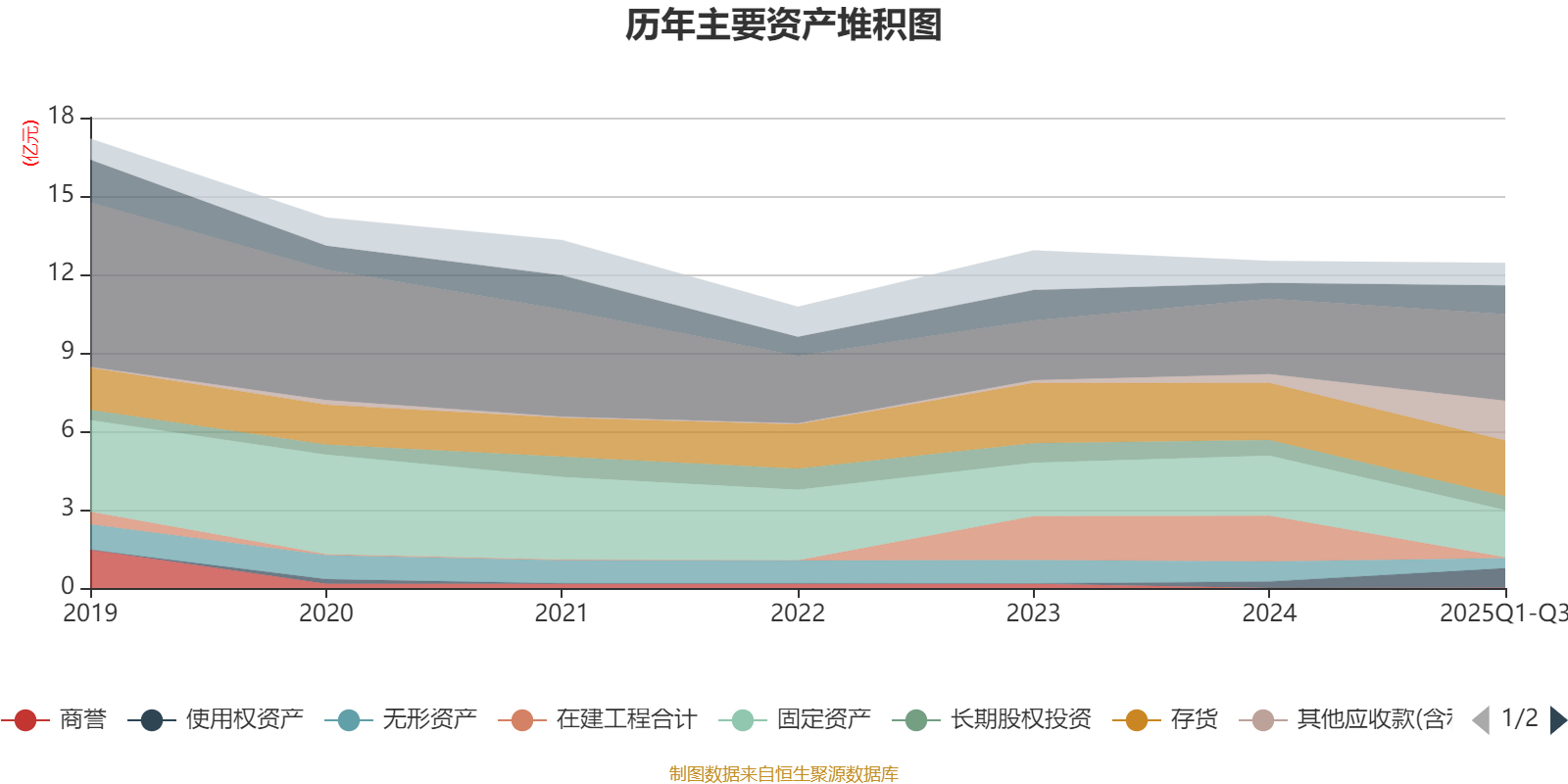 资产重大变化方面,截至2025年三季度末,公司在建工程合计较上年末减少98.48%,占公司总资产比重下降13.79个百分点;其他应收款(含利息和股利)较上年末增加346.26%,占公司总资产比重上升9.54个百分点;货币资金较上年末增加83.71%,占公司总资产比重上升4.03个百分点;使用权资产较上年末增加200.57%,占公司总资产比重上升4个百分点。