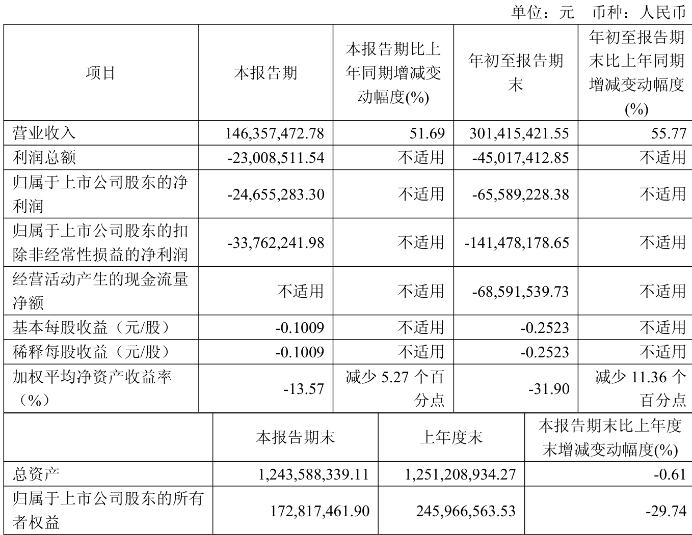 中证智能财讯 *ST星农(603789)10月31日披露2025年第三季度报告。前三季度公司实现营业总收入3.01亿元,同比增长55.77%;归母净利润亏损6558.92万元,上年同期亏损7878.42万元;扣非净利润亏损1.41亿元,上年同期亏损1.1亿元;经营活动产生的现金流量净额为-6859.15万元,上年同期为-9048.03万元;报告期内,*ST星农基本每股收益为-0.2523元,加权平均净资产收益率为-31.90%。