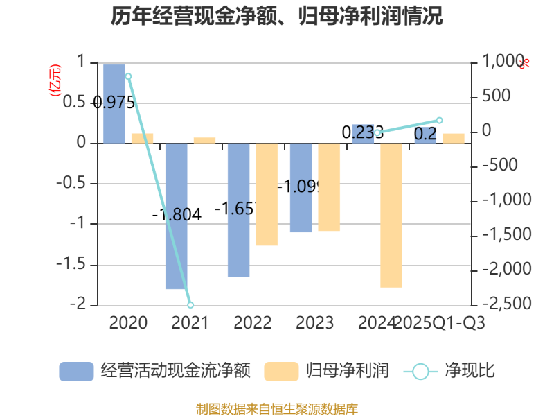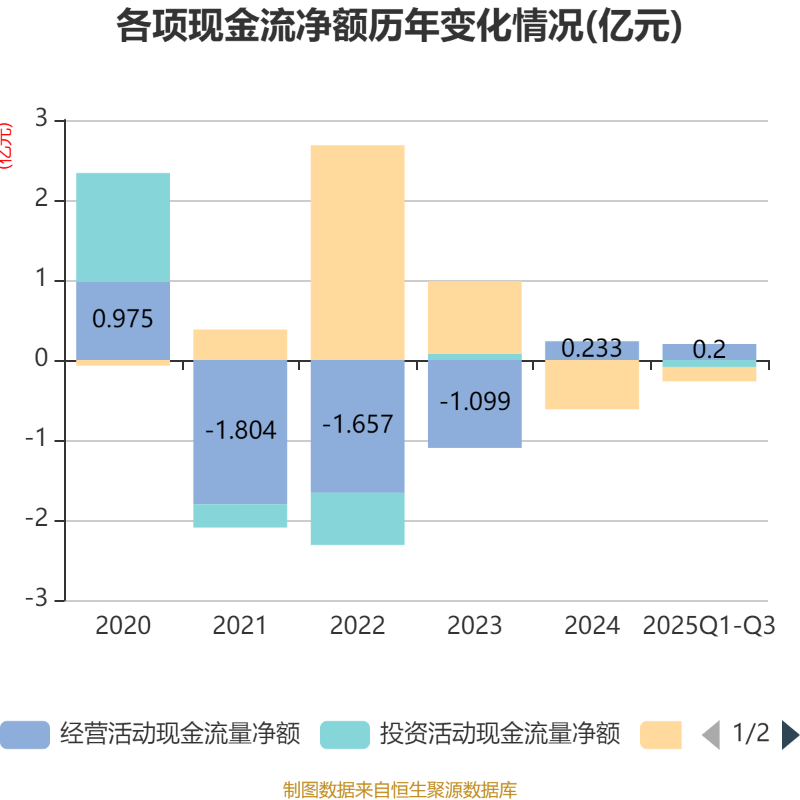 2025年前三季度,公司经营活动现金流净额为1995.09万元,同比增长17.09%;筹资活动现金流净额-1793.83万元,同比增加57.5万元;投资活动现金流净额-887万元,上年同期为-3.97万元。