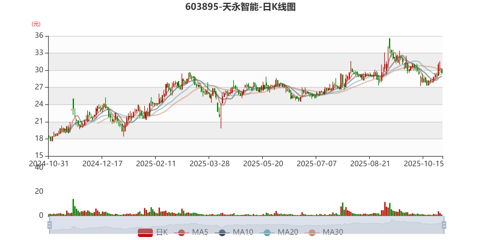 以10月30日收盘价计算,天永智能目前市盈率(TTM)约为-21.5倍,市净率(LF)约16.45倍,市销率(TTM)约7.13倍。