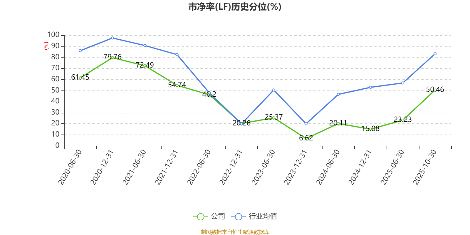 市盈率、市净率为负时,不显示当期分位数,会导致折线图中断。