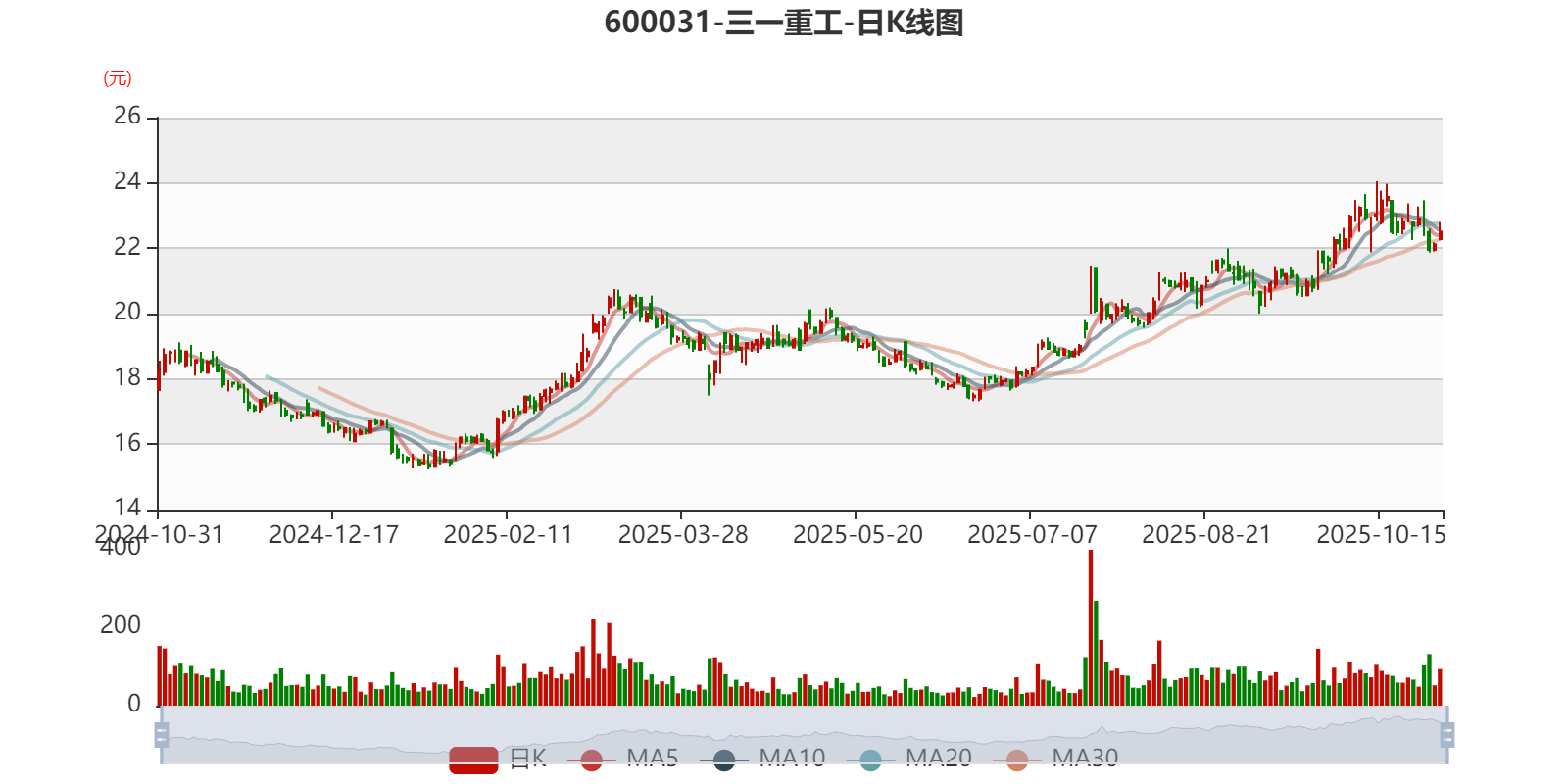 以10月30日收盘价计算,三一重工目前市盈率(TTM)约为24.87倍,市净率(LF)约2.79倍,市销率(TTM)约2.39倍。