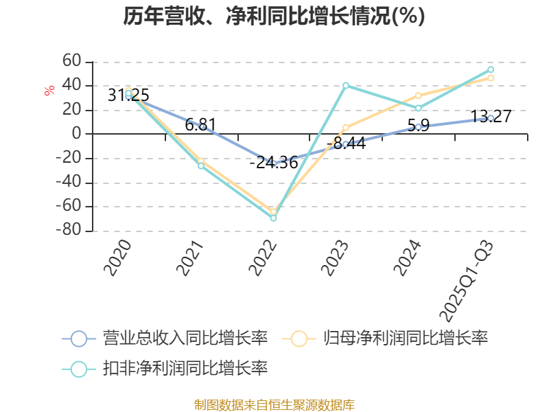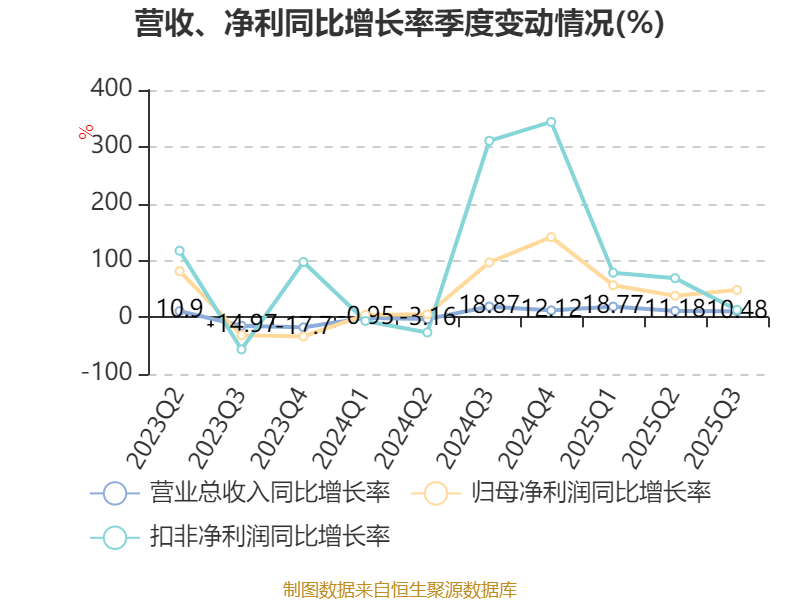 资产重大变化方面,截至2025年三季度末,公司交易性金融资产合计较上年末增加43.03%,占公司总资产比重上升2.81个百分点;固定资产较上年末减少4.17%,占公司总资产比重下降1.04个百分点;应收票据及应收账款较上年末增加7.09%,占公司总资产比重上升0.65个百分点;货币资金较上年末减少1%,占公司总资产比重下降0.54个百分点。