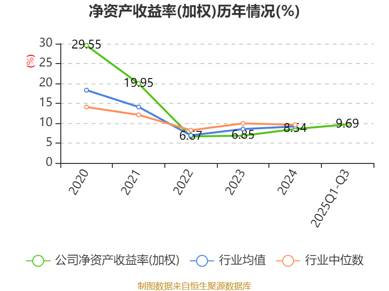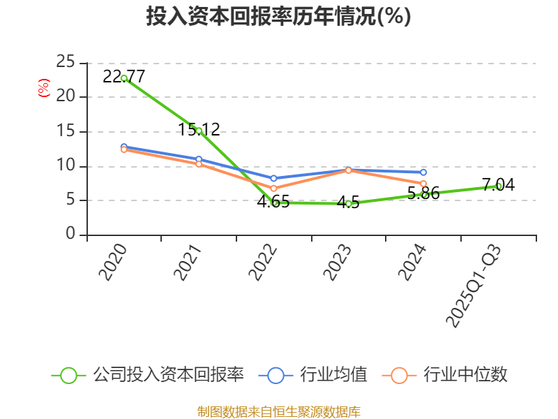盈利能力方面, 2025年前三季度公司加权平均净资产收益率为9.69%,同比上升2.7个百分点。公司2025年前三季度投入资本回报率为7.04%,较上年同期上升2.24个百分点。