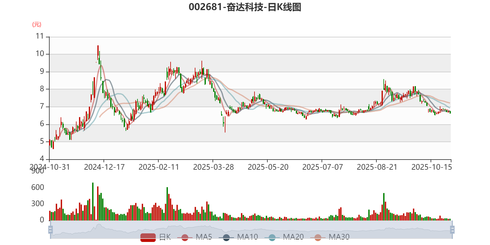 中证智能财讯奋达科技(002681)10月31日披露2025年第三季度报告。前三季度公司实现营业总收入19.9亿元,同比下降15.46%;归母净利润1278.45万元,同比下降91.65%;扣非净利润896.37万元,同比下降93.03%;经营活动产生的现金流量净额为1.28亿元,同比下降41.31%;报告期内,奋达科技基本每股收益为0.0071元,加权平均净资产收益率为0.53%。