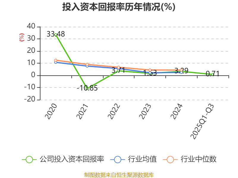 盈利能力方面, 2025年前三季度公司加权平均净资产收益率为0.53%,同比下降6.06个百分点。公司2025年前三季度投入资本回报率为0.71%,较上年同期下降3.83个百分点。