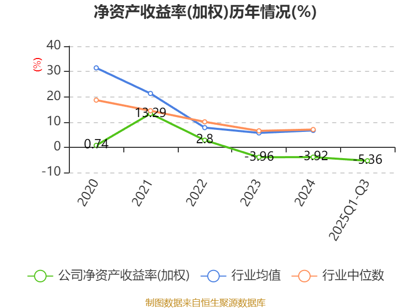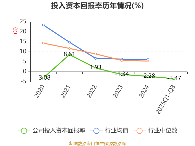 盈利能力方面, 2025年前三季度公司加权平均净资产收益率为-5.36%,同比下降7.17个百分点。公司2025年前三季度投入资本回报率为-3.47%,较上年同期下降5.63个百分点。