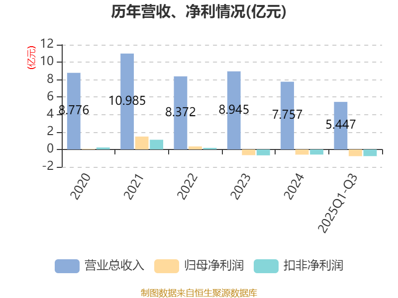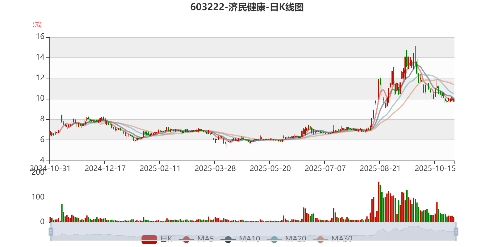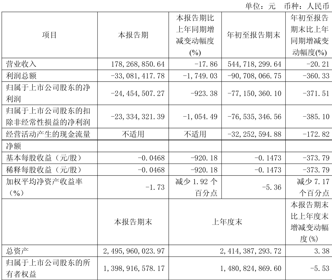 中证智能财讯济民健康(603222)10月31日披露2025年第三季度报告。前三季度公司实现营业总收入5.45亿元,同比下降20.21%;归母净利润亏损7715.04万元,上年同期盈利2841.5万元;扣非净利润亏损7653.53万元,上年同期盈利2684.54万元;经营活动产生的现金流量净额为-3225.26万元,上年同期为4428.8万元;报告期内,济民健康基本每股收益为-0.1473元,加权平均净资产收益率为-5.36%。