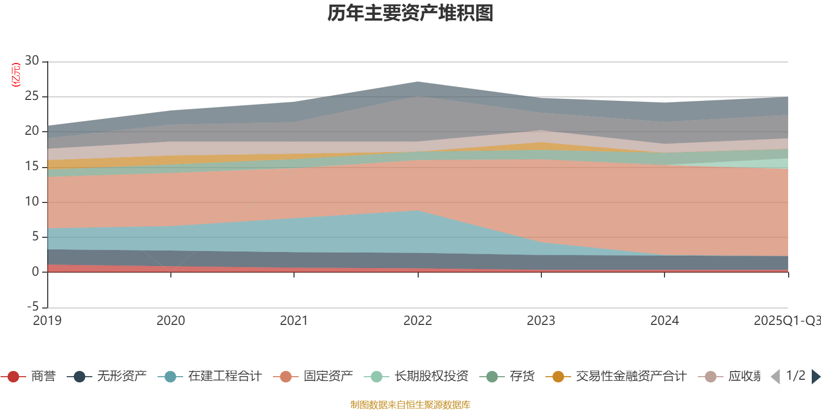 资产重大变化方面,截至2025年三季度末,公司长期股权投资较上年末增加91448.18%,占公司总资产比重上升6.01个百分点;固定资产较上年末减少3.06%,占公司总资产比重下降3.3个百分点;存货较上年末减少22.77%,占公司总资产比重下降1.82个百分点;其他应收款(含利息和股利)较上年末减少34.49%,占公司总资产比重下降1.23个百分点。