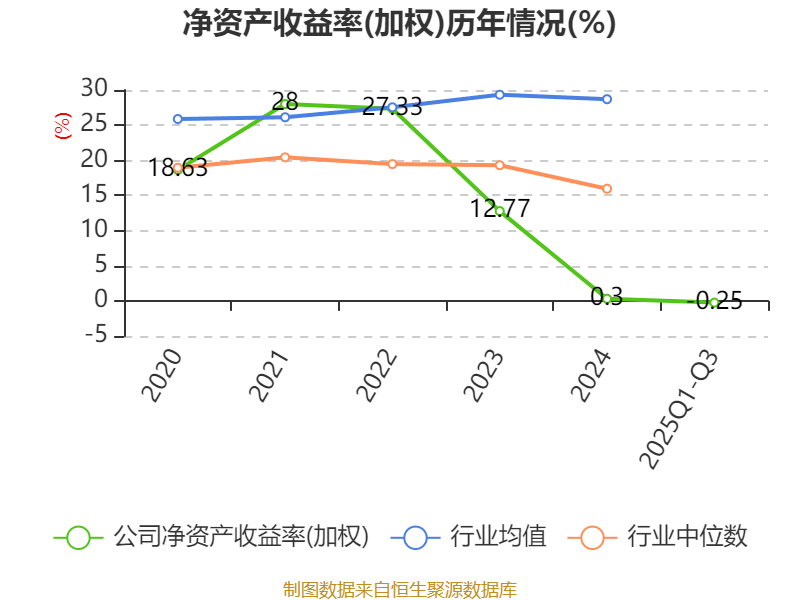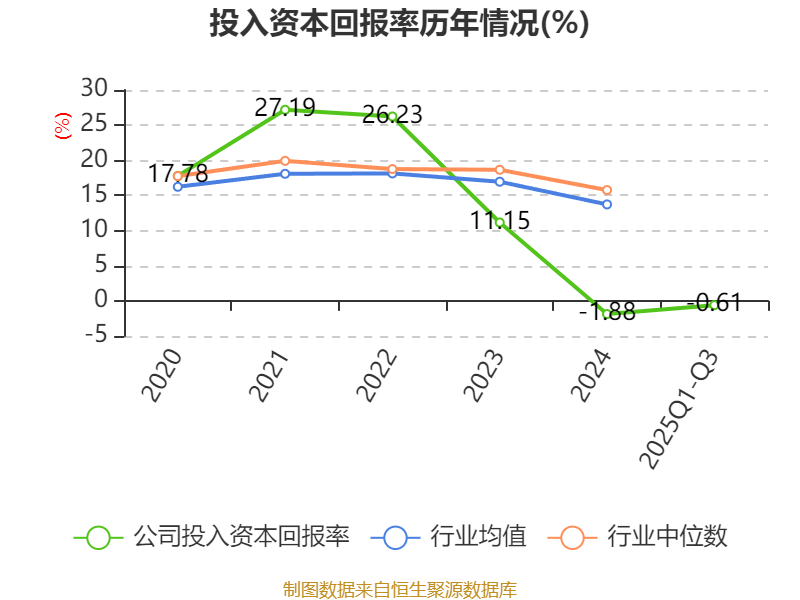 盈利能力方面, 2025年前三季度公司加权平均净资产收益率为-0.25%,同比下降1.56个百分点。公司2025年前三季度投入资本回报率为-0.61%,较上年同期下降0.79个百分点。