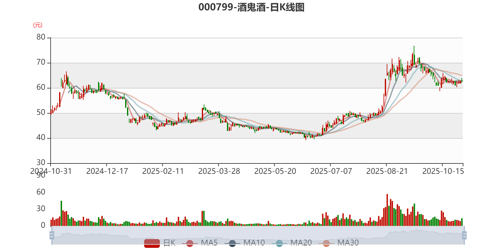 以10月30日收盘价计算,酒鬼酒目前市盈率(TTM)约为-378.68倍,市净率(LF)约5.42倍,市销率(TTM)约20.54倍。