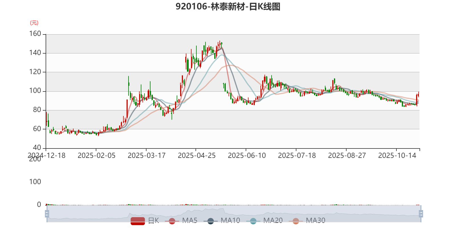 以10月30日收盘价计算,林泰新材目前市盈率(TTM)约为38.17倍,市净率(LF)约10.02倍,市销率(TTM)约12.12倍。