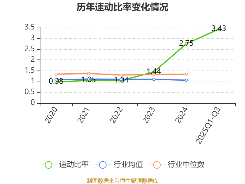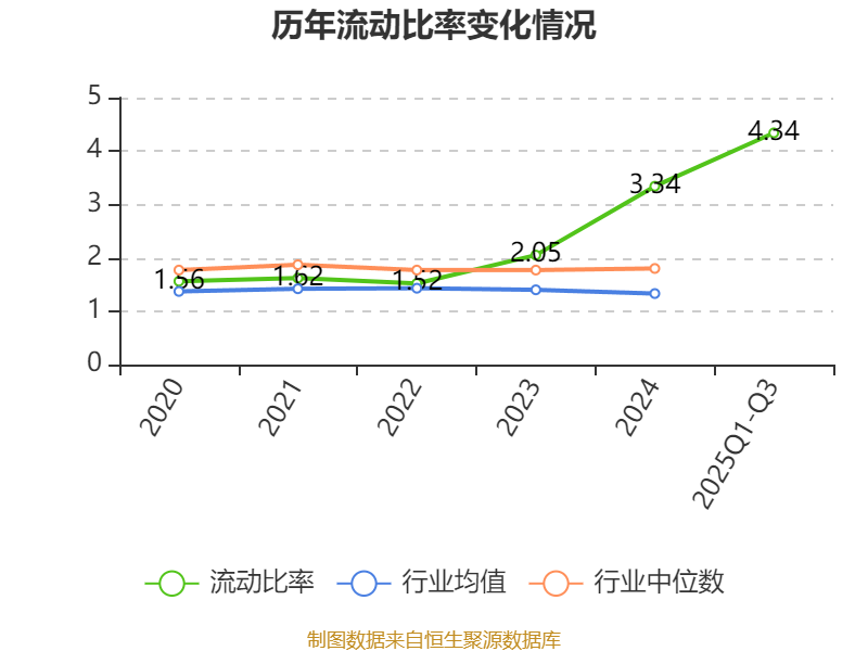 2025年前三季度,公司流动比率为4.34,速动比率为3.43。