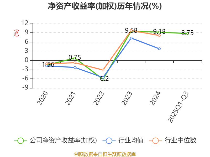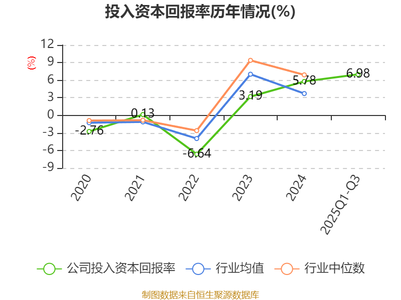 盈利能力方面, 2025年前三季度公司加权平均净资产收益率为8.75%,同比下降0.8个百分点。公司2025年前三季度投入资本回报率为6.98%,较上年同期下降0.63个百分点。