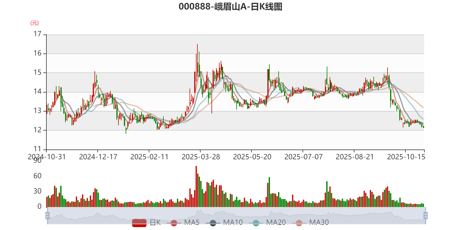 以10月30日收盘价计算,峨眉山A目前市盈率(TTM)约为28.44倍,市净率(LF)约2.35倍,市销率(TTM)约6.8倍。