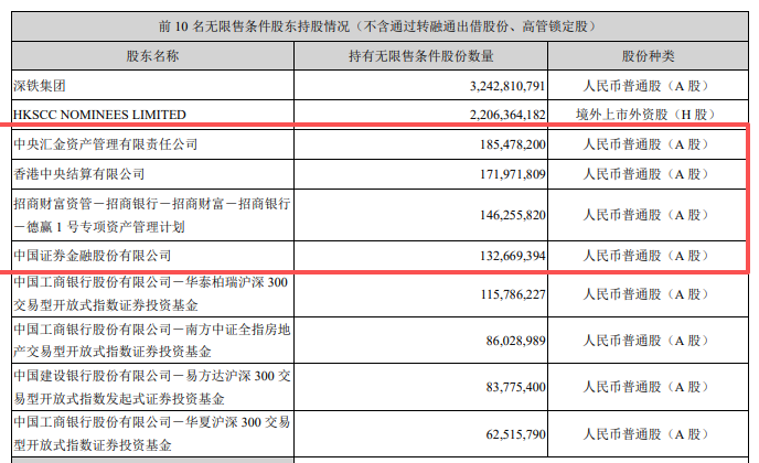 截至报告期末(三季度末),中央汇金仍持有万科A约1.85亿股,一直保持不变。