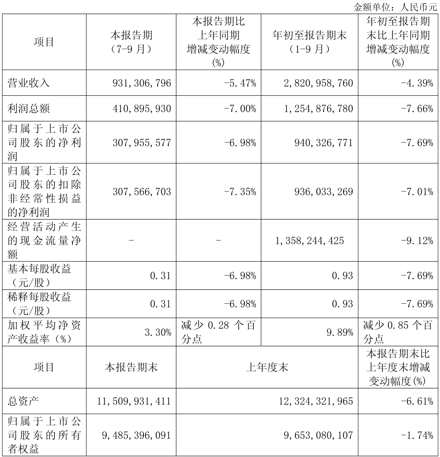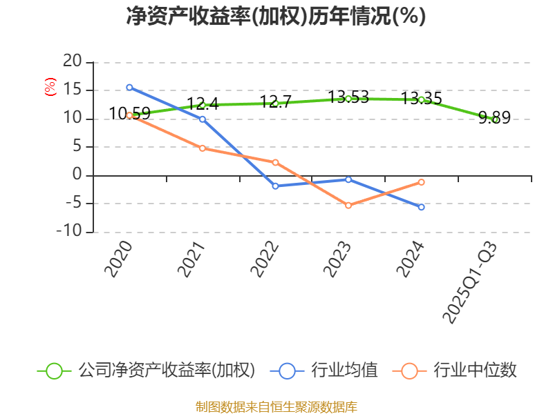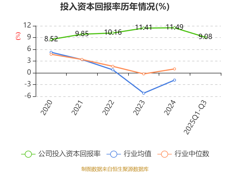 盈利能力方面, 2025年前三季度公司加权平均净资产收益率为9.89%,同比下降0.85个百分点。公司2025年前三季度投入资本回报率为9.08%,较上年同期下降0.33个百分点。