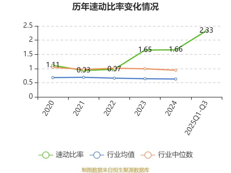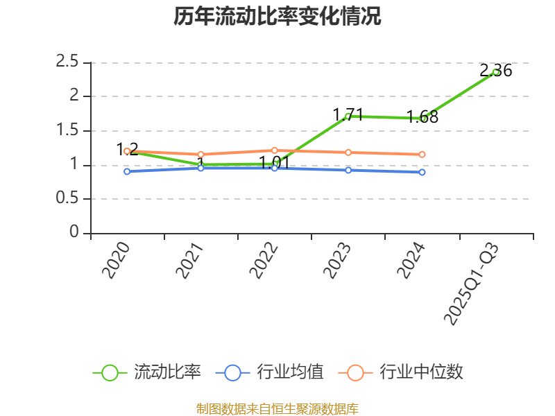 2025年前三季度,公司流动比率为2.36,速动比率为2.33。