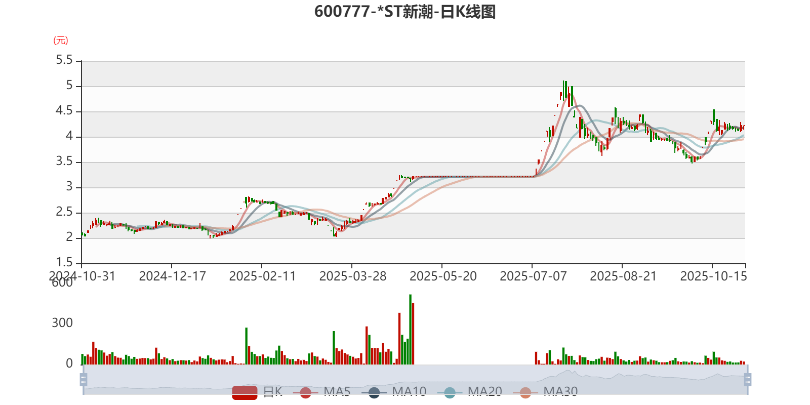 中证智能财讯 *ST新潮(600777)10月31日披露2025年第三季度报告。前三季度公司实现营业总收入56.59亿元,同比下降11.99%;归母净利润13.31亿元,同比下降19.44%;扣非净利润13.31亿元,同比下降27.07%;经营活动产生的现金流量净额为41.88亿元,同比下降24.87%;报告期内,*ST新潮基本每股收益为0.1957元,加权平均净资产收益率为5.78%。
