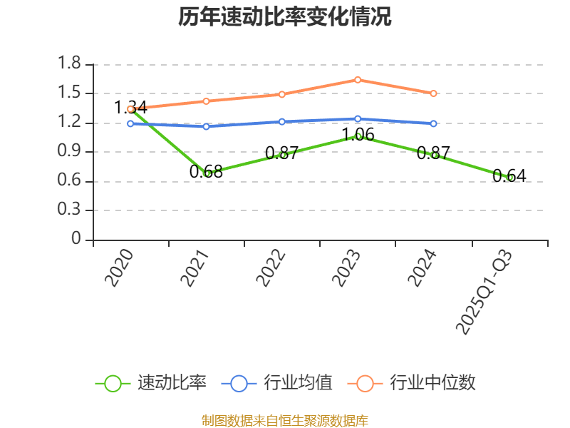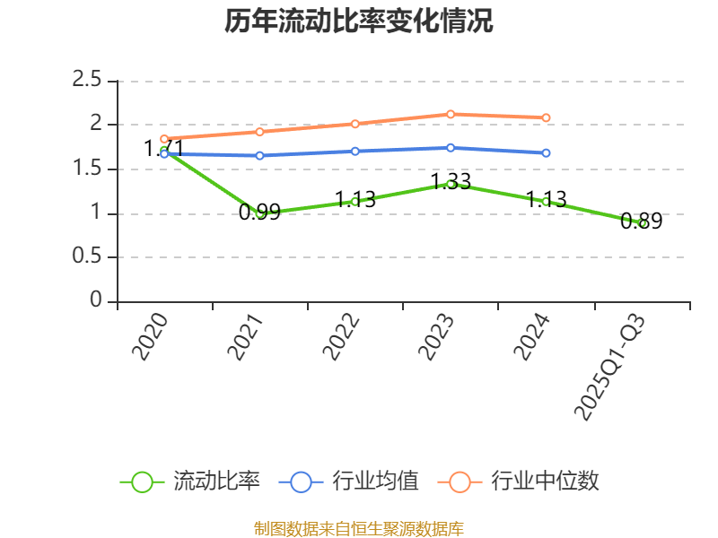 2025年前三季度,公司流动比率为0.89,速动比率为0.64。