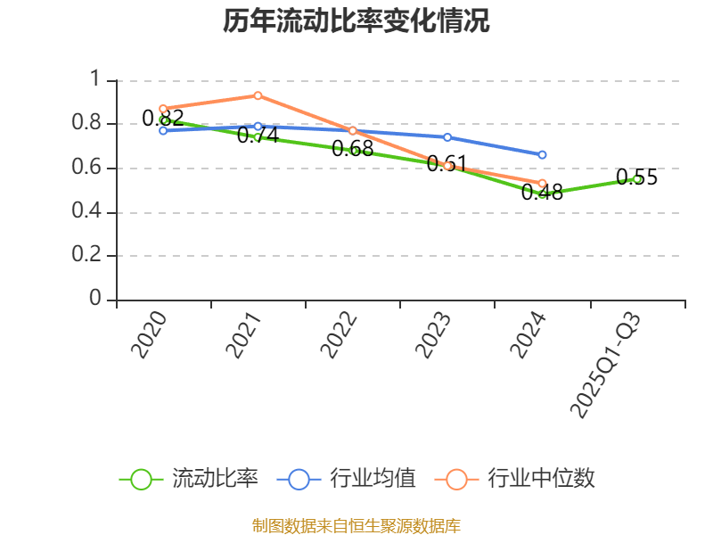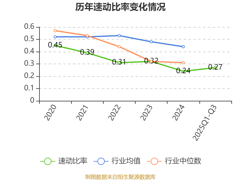 2025年前三季度,公司流动比率为0.55,速动比率为0.27。