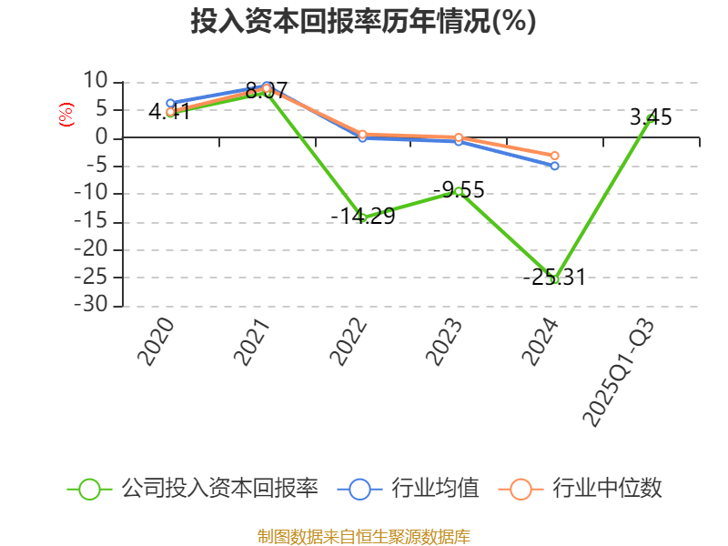 盈利能力方面, 2025年前三季度公司加权平均净资产收益率为2.16%,同比上升47.16个百分点。公司2025年前三季度投入资本回报率为3.45%,较上年同期上升18.79个百分点。