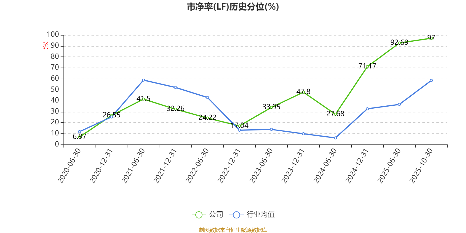 市盈率、市净率为负时,不显示当期分位数,会导致折线图中断。