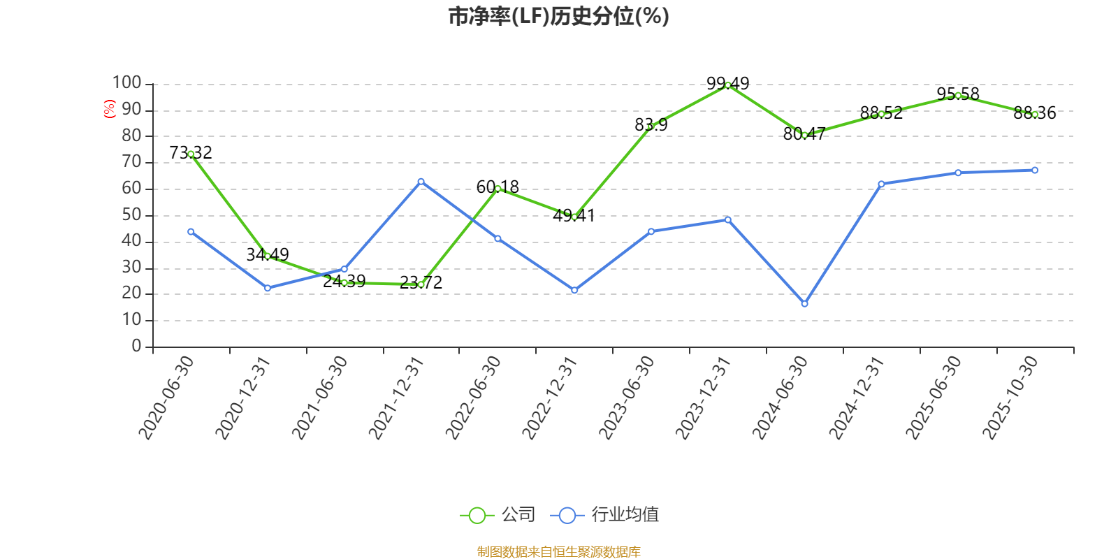 市盈率、市净率为负时,不显示当期分位数,会导致折线图中断。