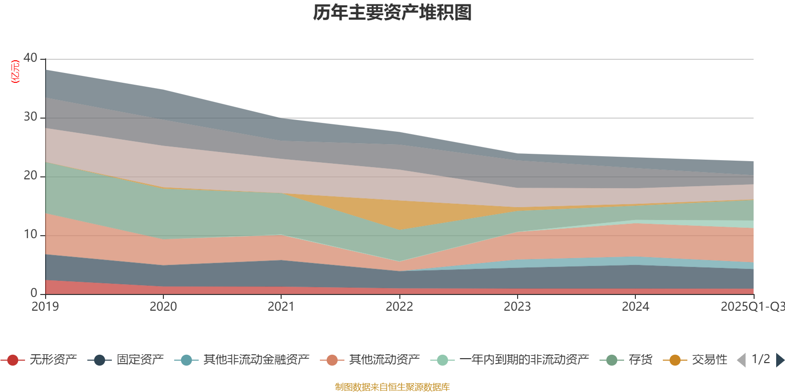资产重大变化方面,截至2025年三季度末,公司货币资金较上年末减少54.67%,占公司总资产比重下降7.88个百分点;存货较上年末增加45.07%,占公司总资产比重上升5.1个百分点;一年内到期的非流动资产较上年末增加125.71%,占公司总资产比重上升3.25个百分点;固定资产较上年末减少17.14%,占公司总资产比重下降2.55个百分点。