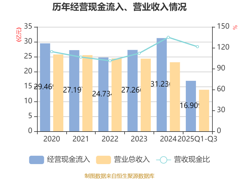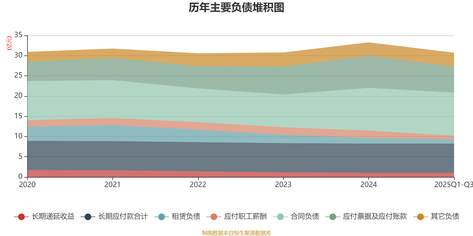 负债重大变化方面,截至2025年三季度末,公司应付票据及应付账款较上年末减少18.94%,占公司总资产比重下降0.86个百分点;应付职工薪酬较上年末减少51.93%,占公司总资产比重下降0.58个百分点;预收款项较上年末增加68.3%,占公司总资产比重上升0.3个百分点;一年内到期的非流动负债较上年末减少30.6%,占公司总资产比重下降0.27个百分点。