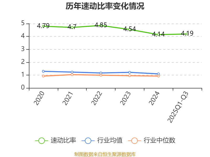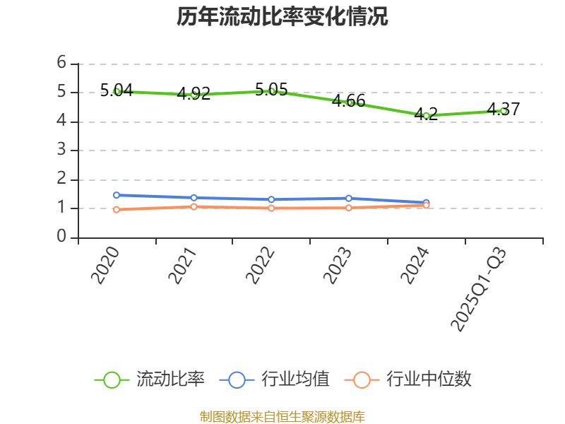 2025年前三季度,公司流动比率为4.37,速动比率为4.19。