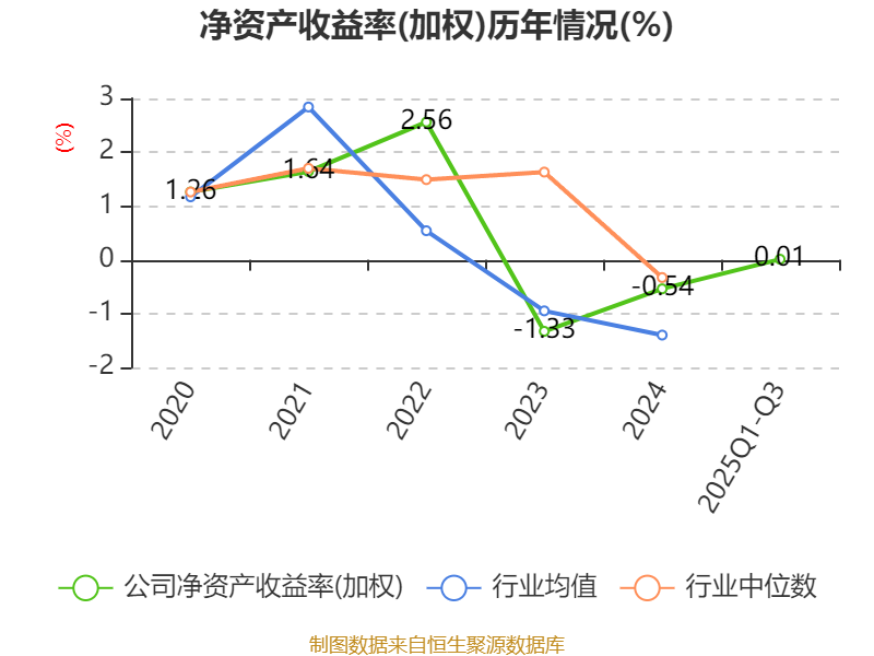 盈利能力方面, 2025年前三季度公司加权平均净资产收益率为0.01%,同比上升0.1个百分点。公司2025年前三季度投入资本回报率为-0.15%,较上年同期上升0.77个百分点。
