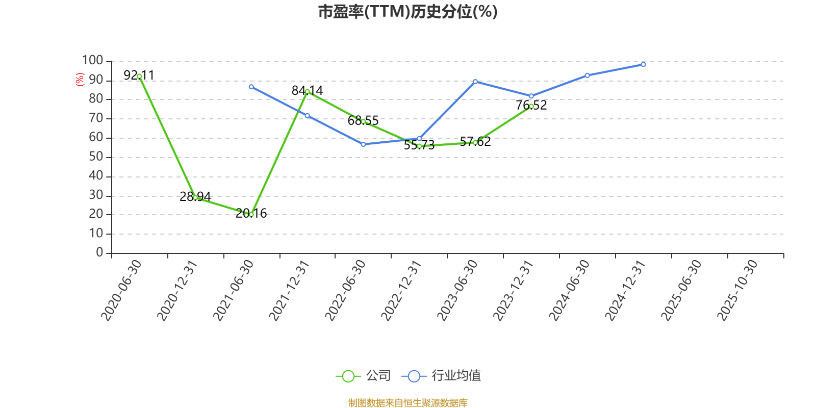 市盈率、市净率为负时,不显示当期分位数,会导致折线图中断。