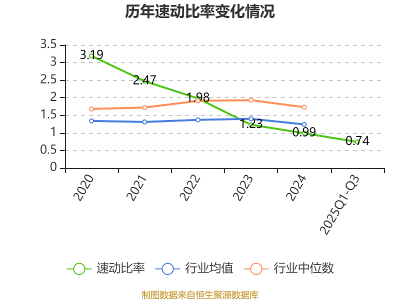 2025年前三季度,公司流动比率为1.24,速动比率为0.74。