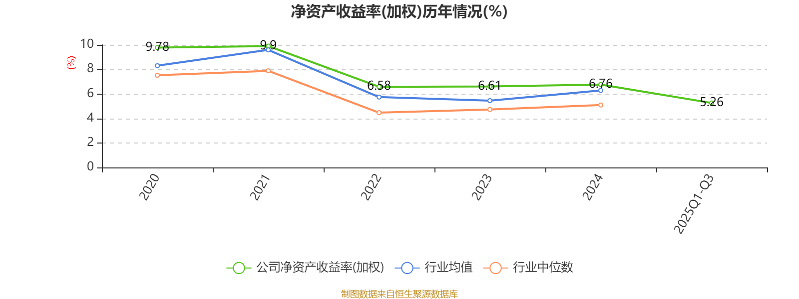 盈利能力方面, 2025年前三季度公司加权平均净资产收益率为5.26%,同比上升0.67个百分点。