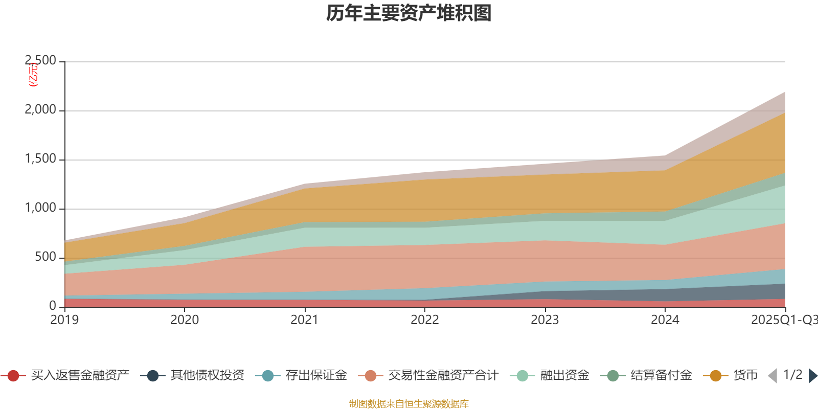 资产重大变化方面,截至2025年三季度末,公司交易性金融资产合计较上年末增加29.45%,占公司总资产比重下降2.09个百分点;长期股权投资较上年末减少42.71%,占公司总资产比重下降2.09个百分点;融出资金较上年末增加59.09%,占公司总资产比重上升1.87个百分点;其他权益工具投资较上年末增加205.65%,占公司总资产比重上升1.28个百分点。