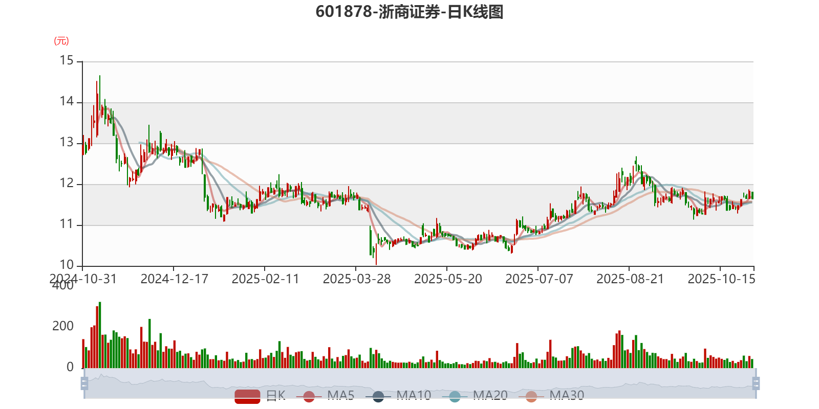 以10月30日收盘价计算,浙商证券目前市盈率(TTM)约为20.8倍,市净率(LF)约1.46倍,市销率(TTM)约2.87倍。