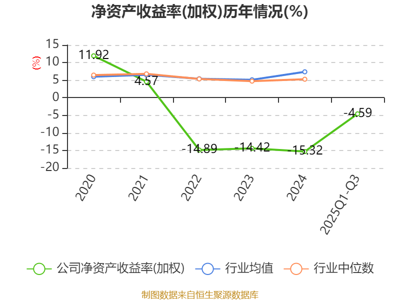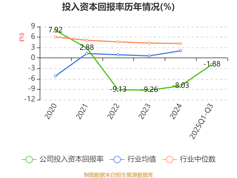 盈利能力方面, 2025年前三季度公司加权平均净资产收益率为-4.59%,同比上升0.58个百分点。公司2025年前三季度投入资本回报率为-1.88%,较上年同期上升1.35个百分点。