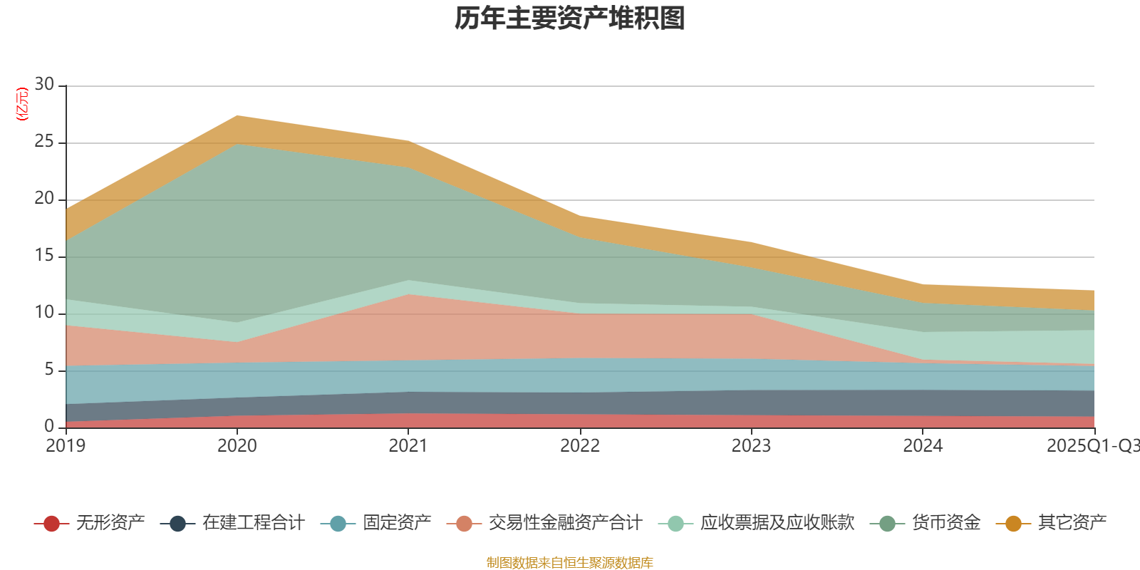 资产重大变化方面,截至2025年三季度末,公司货币资金较上年末减少31.99%,占公司总资产比重下降5.86个百分点;应收票据及应收账款较上年末增加21.64%,占公司总资产比重上升5.25个百分点;存货较上年末增加104.87%,占公司总资产比重上升2.53个百分点;交易性金融资产合计较上年末减少40.65%,占公司总资产比重下降0.94个百分点。