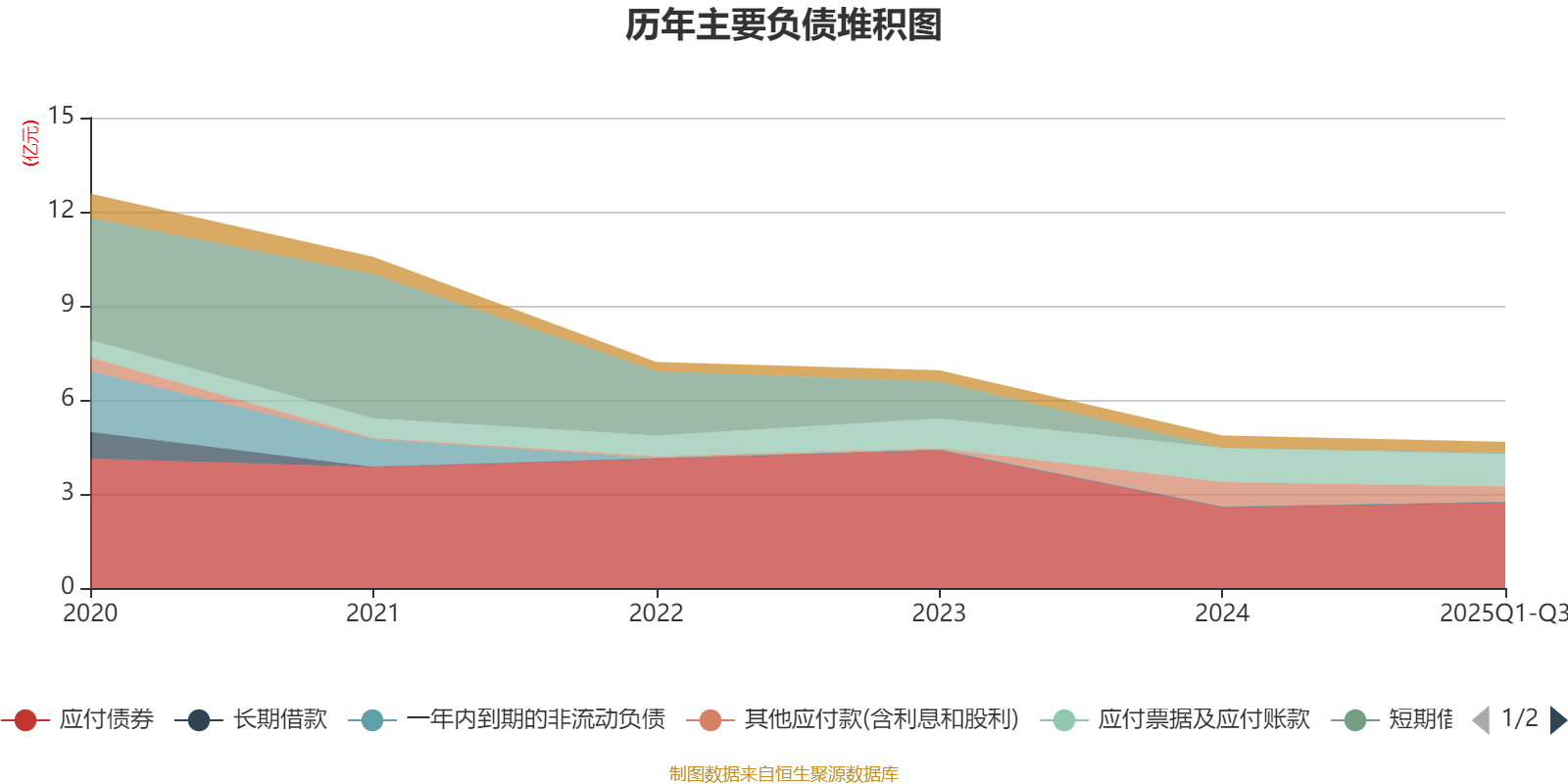 负债重大变化方面,截至2025年三季度末,公司应付债券较上年末增加5.9%,占公司总资产比重上升2.19个百分点;其他应付款(含利息和股利)较上年末减少38.18%,占公司总资产比重下降2.18个百分点;应付职工薪酬较上年末减少72.58%,占公司总资产比重下降0.47个百分点;短期借款占公司总资产的0.42%,上年末为0。