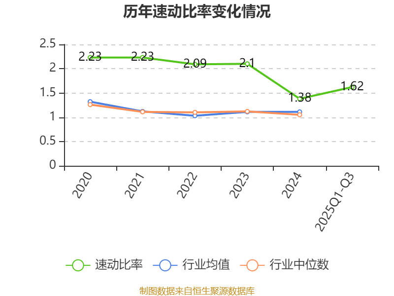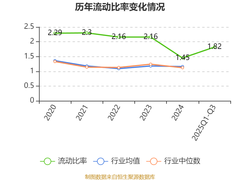 2025年前三季度,公司流动比率为1.82,速动比率为1.62。