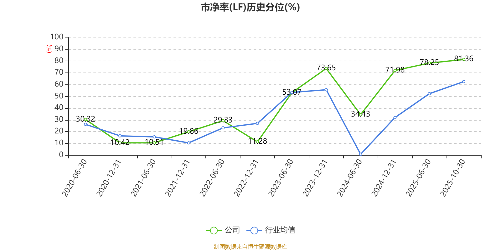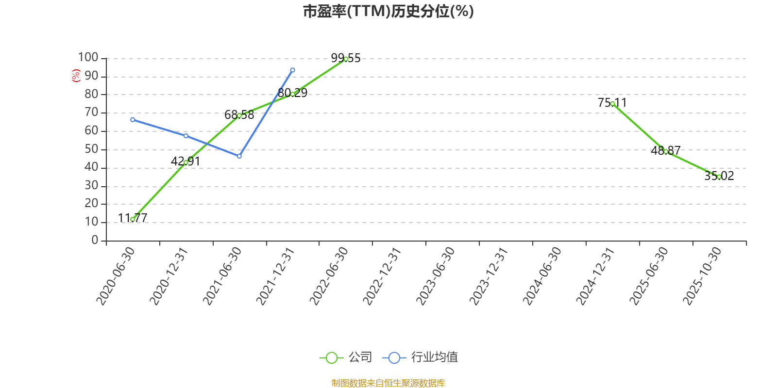 市盈率、市净率为负时,不显示当期分位数,会导致折线图中断。
