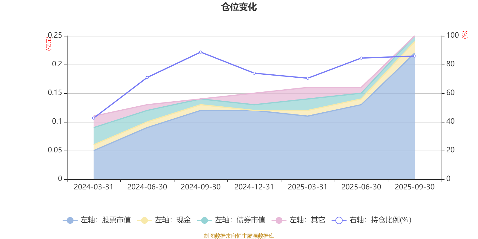据定期报告数据统计,成立以来平均股票仓位为73.88%,同类平均为83.73%。2024年三季度末基金达到88.68%的最高仓位,2024年一季度末最低,为42.66%。