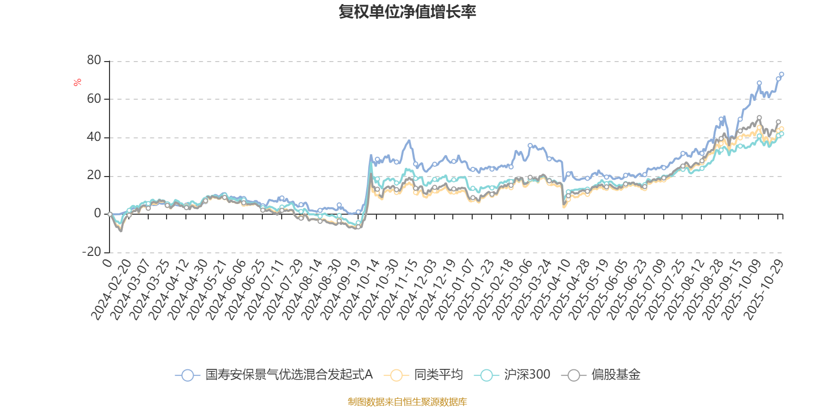 截至10月29日,国寿安保景气优选混合发起式A近三个月复权单位净值增长率为30.97%,位于同类可比基金73/689;近半年复权单位净值增长率为46.09%,位于同类可比基金113/688;近一年复权单位净值增长率为35.70%,位于同类可比基金223/657。